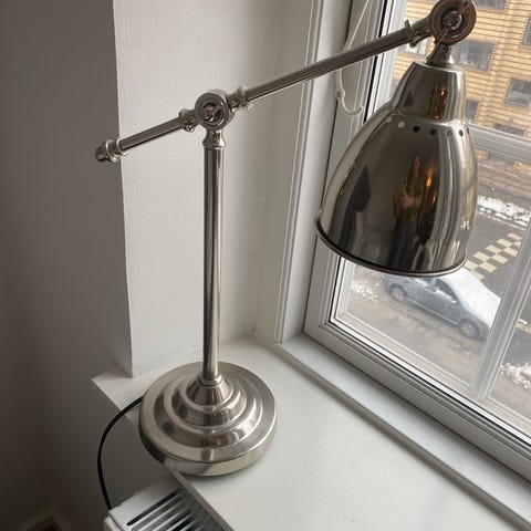 Sølvfarvet bordlampe med afbryder