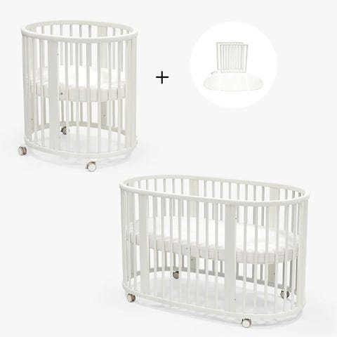 Baby- og juniorseng med hjul for mobilitet. Kan omformes til 3 længder i alt op til 165 cm. Alt medfølger: