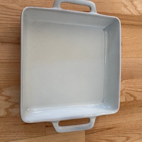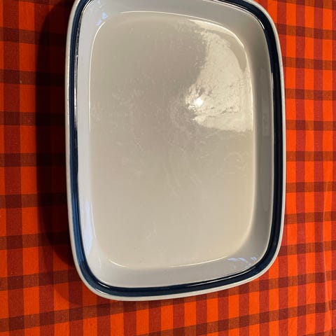 Arabia fad i hvid porcelæn med rektangulært design og let skrånende kanter. Fadet har en enkel og funktionel form, egnet til servering af mad eller som dekorativt element i køkkenet.