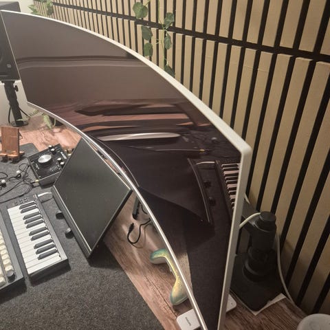 Philips 49" Curved skærm med buet design, velegnet til både arbejde og underholdning. Skærmen har en bred visningsvinkel og er designet til at give et immersivt oplevelse.