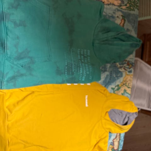 Der er noget med bogstavet på trøjen. Er markeret på billedet. Brystmål 2x 53 cm. Længe målt fra nakken og ned ca 62-63 cm. Bemærk det er str 16 år. Ved ikke om det svarer til str 170