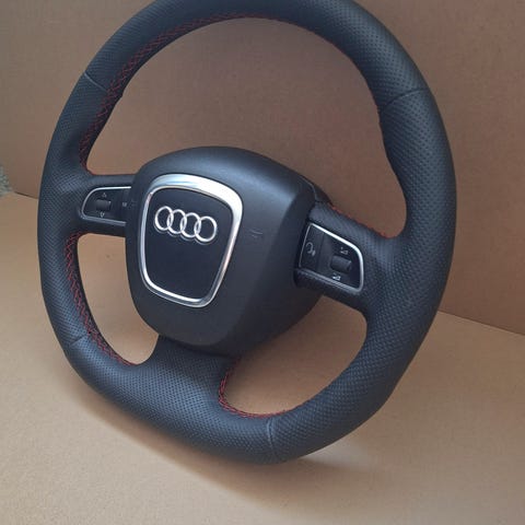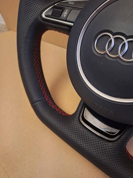 Audi SQ5 8r flatbund rat, alu paddle shift, med sprit ny kvalitet perforeret læder og rød syninger, det er en OEM Audi, original rat (ikke kina kopi)