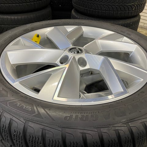 Næsten helt nyt alufælge med sommerdæk på. De har været monteret på Skoda Kodiaq kun 2 måned. Ikke kørt meget som kan ses på dem.