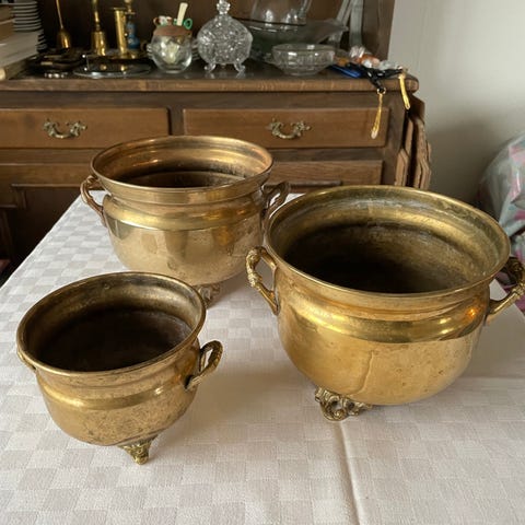 Pris for de 2 messingpotter samlet 110kr