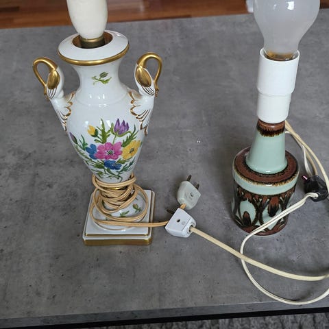 2 stk. flotte tyske porcelæns bordlamper med messingkrave sælges samlet for kr. 300.00