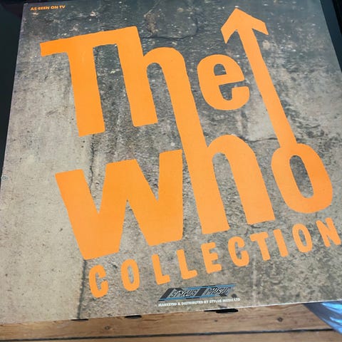 The Who Collection musikalbum med samling af sange fra The Who. Indeholder flere tracks fordelt på to sider. Cover med ikonisk design og tekst i orange og blå farver.Dobbelt LP