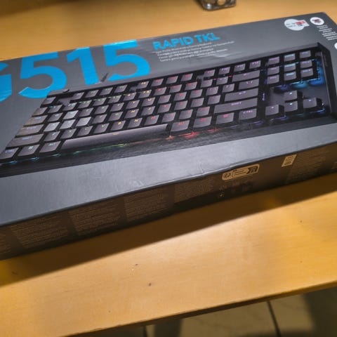 Logitech G515 TKL mekanisk gaming tastatur med kompakt design uden numerisk tastatur. Tastaturet har RGB-baggrundsbelysning og lavprofil mekaniske taster. Velegnet til gaming og skrivearbejde.