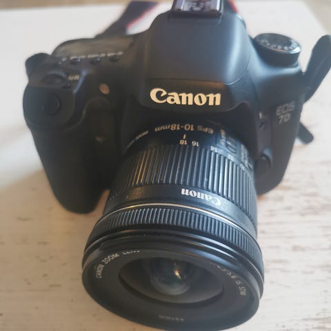 Canon 7D. Et robust spejlrefleks kamera fra Canom, 7 billeder i sekunden, vand og støv afvisende. Almindelige brugsspor. Sensor er en og uden pixelfejl. Optager FHD video i høj kvalitet. Sættet består af: