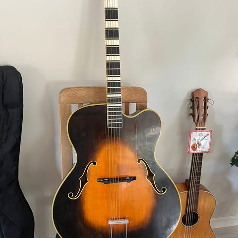 Virkelig fin Jazzguitar. Der medfølger original kasse. Sat op med 0.12 Flat wounds.