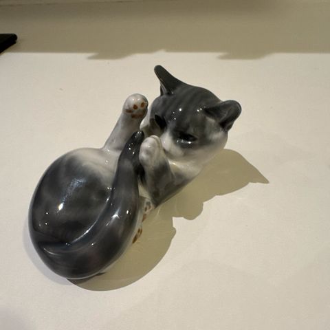 Porcelæns kat fra Royal Copenhagen. Nr. 1803.