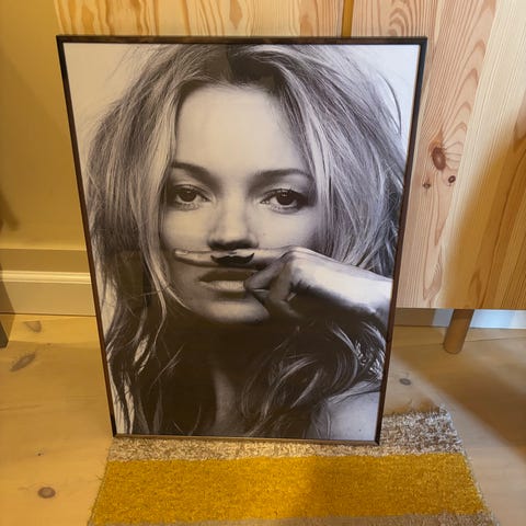 Kate Moss - indrammet plakat i str. 50 x 70 cm. Kan afhentes på vores adresse i Nyborg, tæt ved motorvejen. Levering til adresse er også mulig, mod betaling. Kontakt mig gerne på mobil 29990387 for nærmere.
