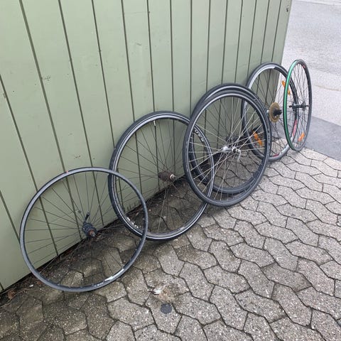 Foræres væk, da hjulet har slået sig. Uden dæk og slange.