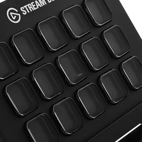 Elgato Stream Deck kontrolpanel med programmerbare knapper, designet til brug i streaming og indholdsproduktion. Enheden har en kompakt størrelse og et brugervenligt interface med flere tilpassede funktioner.