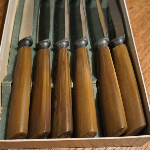 Bestik, 9 blandede knive i rustfri stål sælges samlet for 40 kr.
