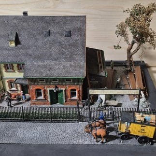 Vollmer Z 9560 modelbygning af en kirke i skala Z. Sættet indeholder dele til at samle en detaljeret kirke med rød tag og flere vinduer. Materialet er plastik, og sættet inkluderer også dekorative elementer til landskabsopbygning omkring bygningen.