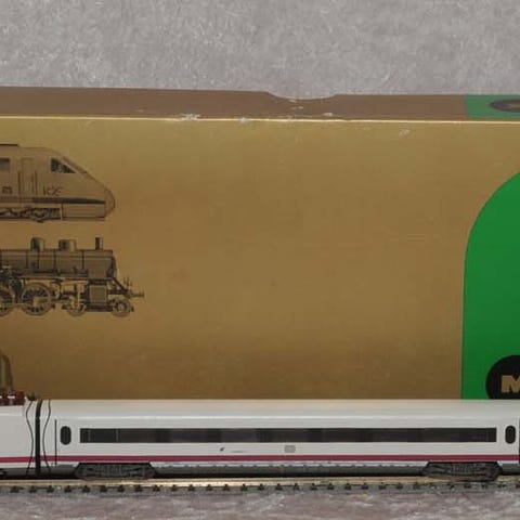 Sættet er brugt. Bortset fra lidt støv/snavs, primært på oversiden, fremstår sættet næsten som nyt. Sættet er til 2-leder DIGITAL. Dekoderen er indstillet til adresse 614. Sættet har kørelys som lyser hvidt og rødt i forhold til køreretningen. Der er monteret Fleischmann krog-koblinger mellem de enkelte enheder. Der er monteret en Märklin bøjlekobling bagpå styrevognen. Kan efter ønske leveres med Märklin bøjlekoblinger.