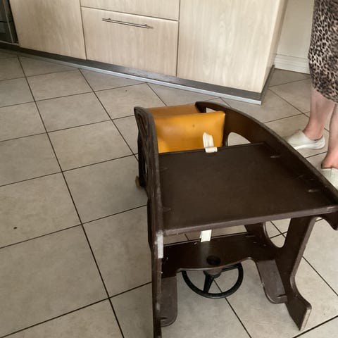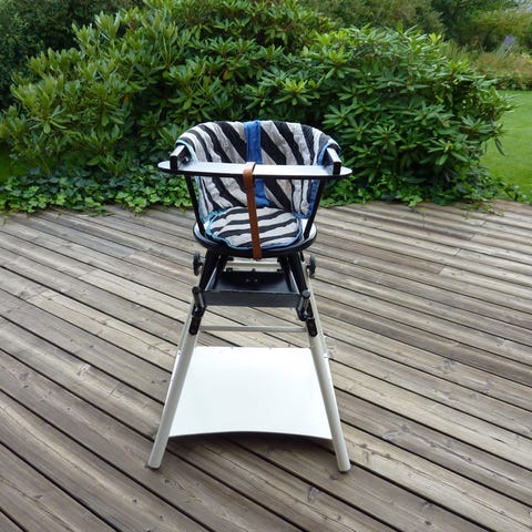 Brugt få gange. Kan laves om fra højstol til skråstol og vugge. 3 i 1.