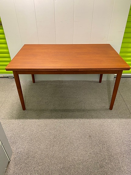 Lækker rundt spisebord i massiv egetræ med udtræk, en tillægsplader. H. 75 cm. Tillægsplader 30 cm. Spisebord med plade totallængder 130 cm. Fremstår i super stand. Evt kan lev aftales