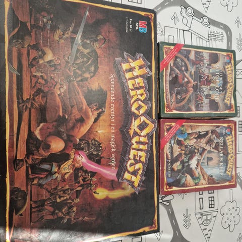 Komplet originalt HeroQuest fra Milton Bradley/Games Workshop.