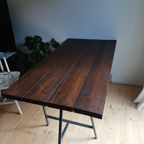 Købt brugt på dba tidligere, så derfor kan det nu købes til 500kr. Bordet har en ridse på den ene planke.
