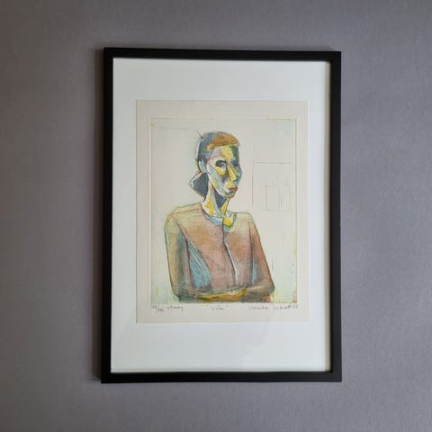 Ætsning af Ture Lidström fra 1958 i lys træramme.