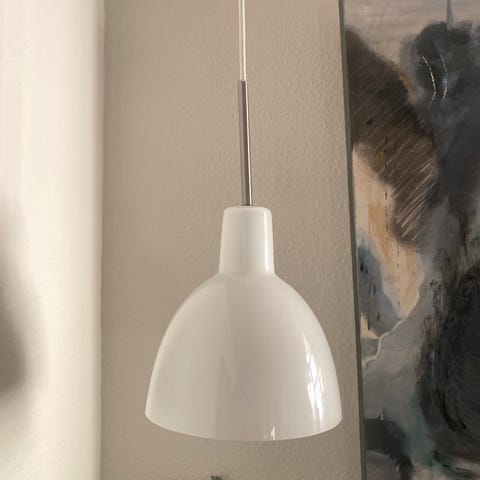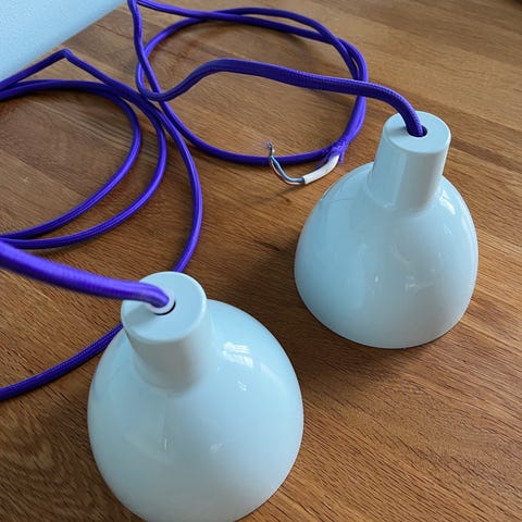 To Louis Poulsen Toldbod pendler i lyseblå med mørkelilla ledning. Fremstår som nye.