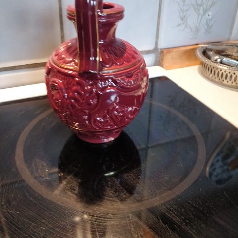 Vase, Lille keramik vase, Micael andersen og søn, Lille blå ca 9 cm høj vase fra micael andersen og søn med hank og lille rundkirke i fejlfri stand. sendes for købers regning eller hentes her