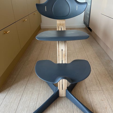 Nomi/Stokke Højstol i grå farve designet til børn. Stolen har justerbar højde og fodstøtte, hvilket gør den egnet til forskellige aldre og størrelser. Fremstillet i holdbare materialer med fokus på funktionalitet og komfort.