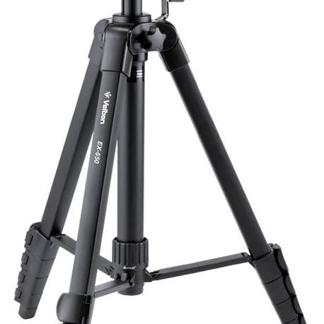 Velbon PH-237Q kamera tripod med justerbare ben og panoramahåndtag. Tripodbenene kan låses i forskellige højder, og hovedet har en quick release-plade til nem montering af kamera.