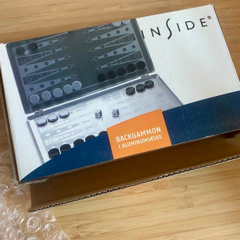 Flot og elegant brætspil (Skak/backgammon) i egetræ. (NY). Taske og brikker medfølger.