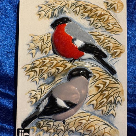 Smukt og meget naturtro relief af en dansene trane. Staffan Johnson er meget dygtig til at gengive den natur han begår sig i. Meget velholdt og kommer fra røgfrit hjem