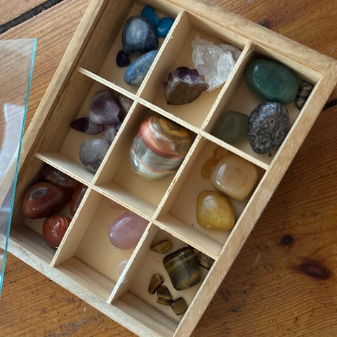 Samling af forskellige sten og krystaller