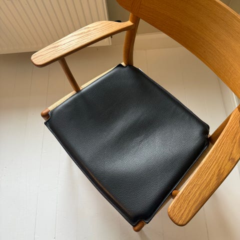CH26, Carl Hansen, Wegner, læderhynde, sort læder, designstol, dansk design.