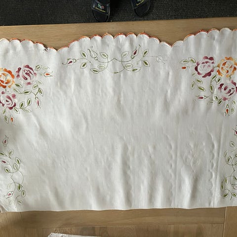 Kommodedug, Blonde Kommodedug. Fremstår med små pletter - se billede. 85 x 48 cm.