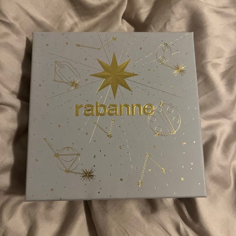 Paco Rabanne Fame edp sæt med body lotion. Sættet indeholder en parfume og en body lotion på 50 ml. Parfumen har en unik flakonform, og body lotionen leveres i en hvid tube med guldtekst.