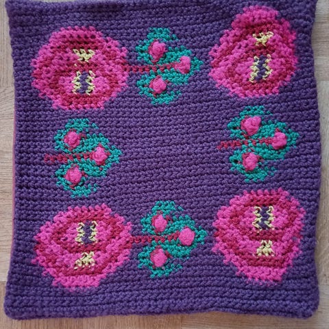 Pude stykke, Home made, Hjemmehæklet pude betræk i uld garn meget orange i firkanter ca 38 gange 38 og klar til at blivemonteret fabrikeret af min mor i 70erne og klart retro design. sendes for købers regning eller hentes her