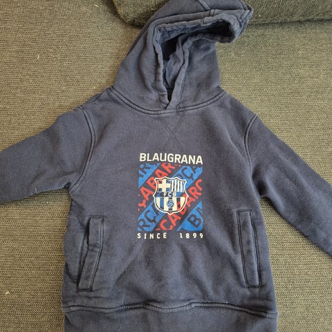 Nike FC Barcelona Blau Grana hættetrøje til herre i størrelse L. Fremstillet i orange bomuldsmateriale. Modellen har lynlås foran og to forlommer.