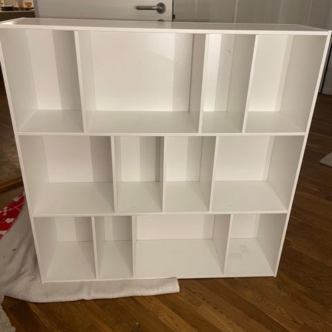 Reol, Danbo, b: 116 d: 44 h: 204, Sælger med grædende hjerte vores flotte reol i romantiske look med lidt patina. Den er mega tung grundet god kvalitet. Hylderne kan rykkes. Kan også bruges uden fødderne. Fødderne sidder fuld stabilt, men når det skal flyttes sidder et par af dem løse. Men ingen betydning, når den står oprejst. Da det er et tung reol.