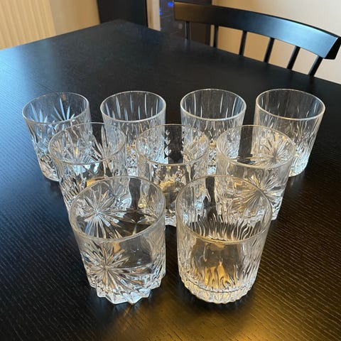 Lyngby glas Melodia glas sæt bestående af 2x4 whiskyglas og 4x4 høje glas. Sættet er fremstillet i klart glas med et karakteristisk mønster. Velegnet til servering af forskellige drikkevarer.