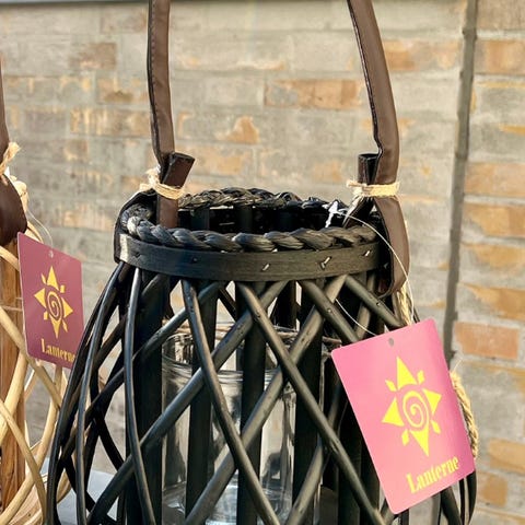 Jysk dekorationslanterne i sort og naturfarvet rattan