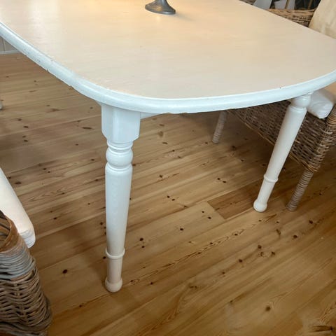 Flot lyst sæbebehandlet spisebord i massiv træ. 160 x 90 cm. Højde 75 cm