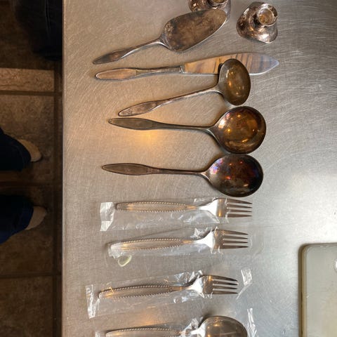Strøer i pletsølv, trænger til en klud og sælger helst samlet