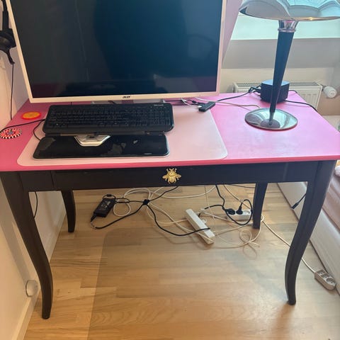 Væg monteret skinner og skrivebords bordplade