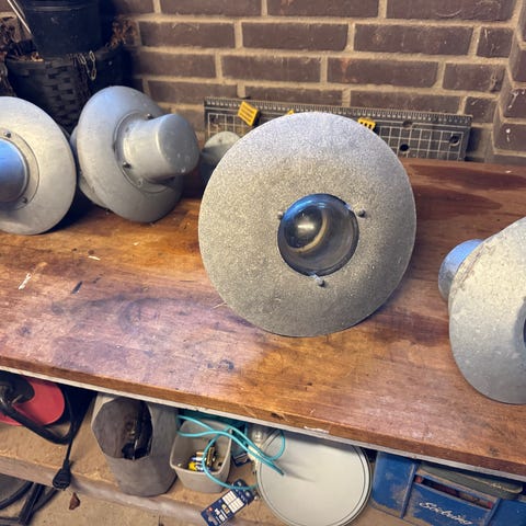 Par galvaniserede udendørslamper.