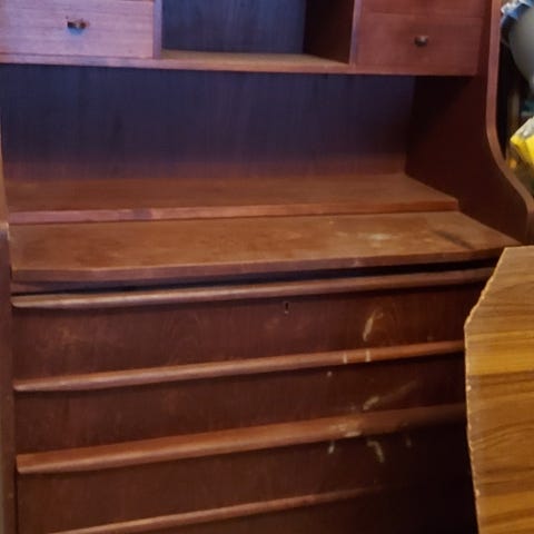 Skab med sokkel og reol sælges samlet