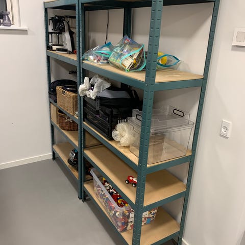 Stålramme reol med træhylder