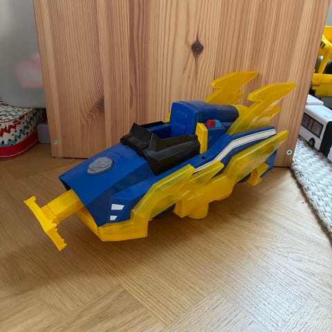 Paw Patrol legetøjslastbil i gul farve. Fremstillet til børn og egnet til leg med konstruktions- og lastbiltema.