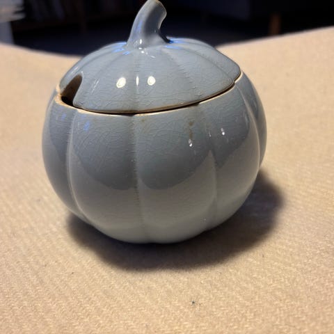 Fin marmeladekrukke i lyseblå. Ingen skår