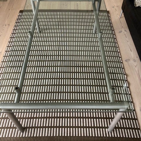 Glasbord, glas, b: 75 l: 130 h: 75, Glas spisebord med 2 glasplader og stålben(plads til 6 stol).