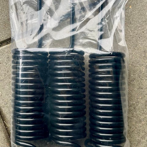 Plantespiraler, til tomater og lignende planter i drivhus, kan trækkes ud til ca. 180 cm der kan sendes ca 30 stk i en 5 kg pakke pr stk 20kr